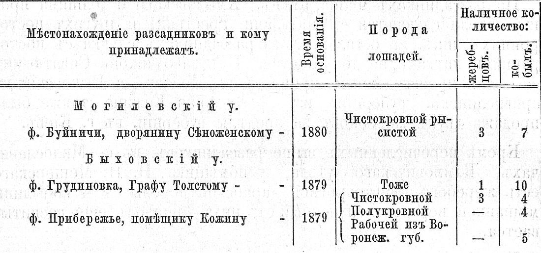 В могилевской губернии никогда не было конских племенных заводов. И только с 1843 при ферме Горы-Горецкого земледельческого училища начали разведение единичных экземпляров.